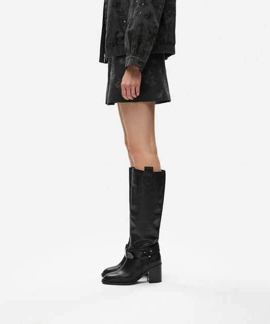 İndirim%100 Deri Metal Tokalı Çizme