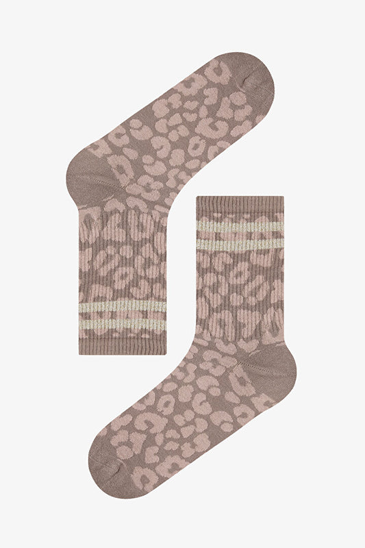2 Çift Leopar Desenli Simli Çizgili Tenis Kolej Soket Çorap