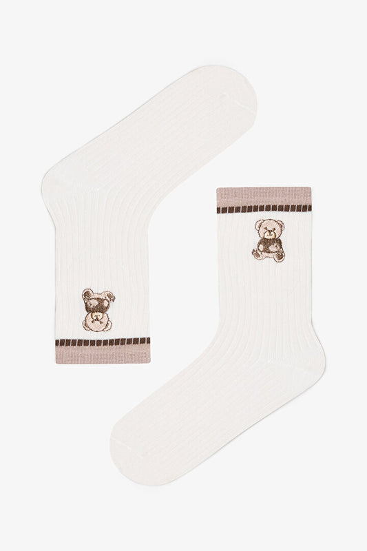 2 Çift Ayı Nakışlı Ve Çizgili Soket Çorap