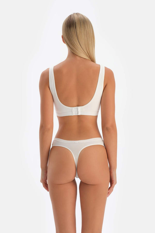 Kırık Beyaz Micromodal Kruvaze Arkası Dantel Detaylı Üçgen Soft Bra