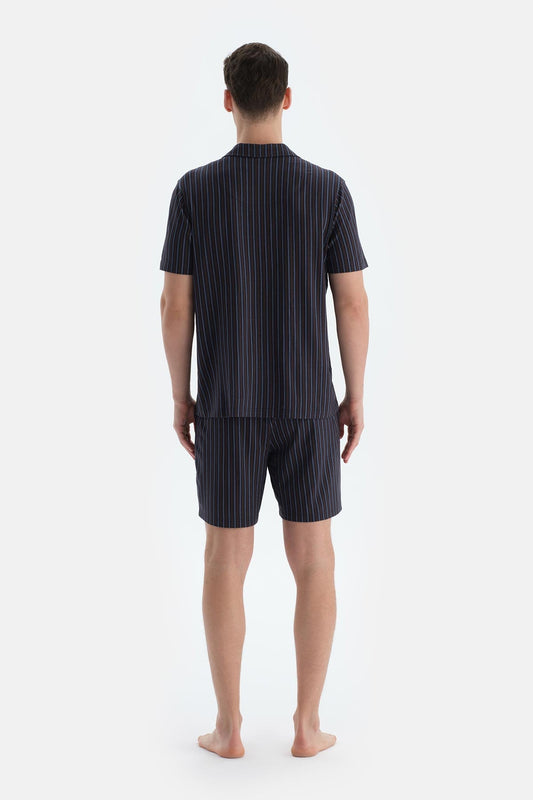 Lacivert Çizgili Gömlek Şort Pijama Takımı