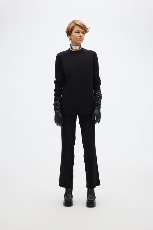 İndirimYırtmaçlı Uzun Triko Siyah Kazak