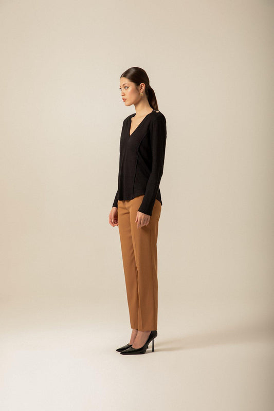 Yüksek Bel Cep Dikiş Detaylı Camel Pantolon
