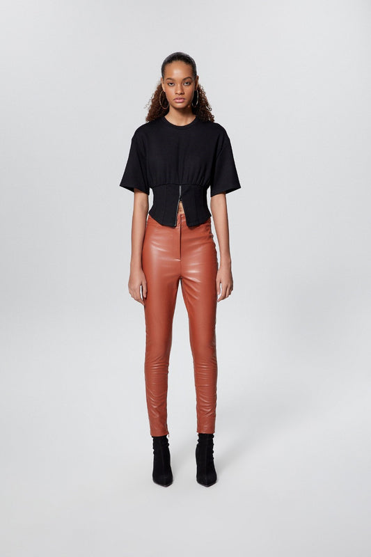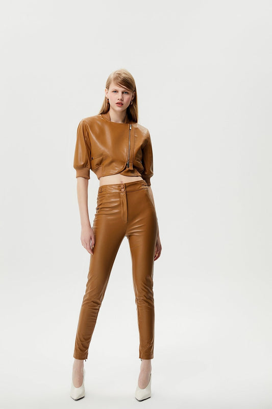 İndirimYüksek Bel Taba Suni Deri Tayt
