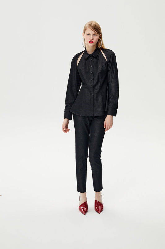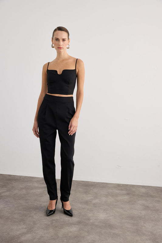 Yüksek Belli Önü Pileli Siyah Pantolon