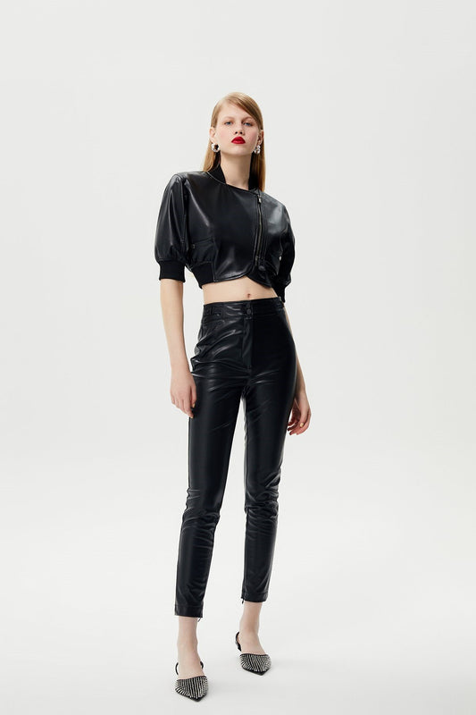 İndirimYüksek Bel Siyah Suni Deri Tayt