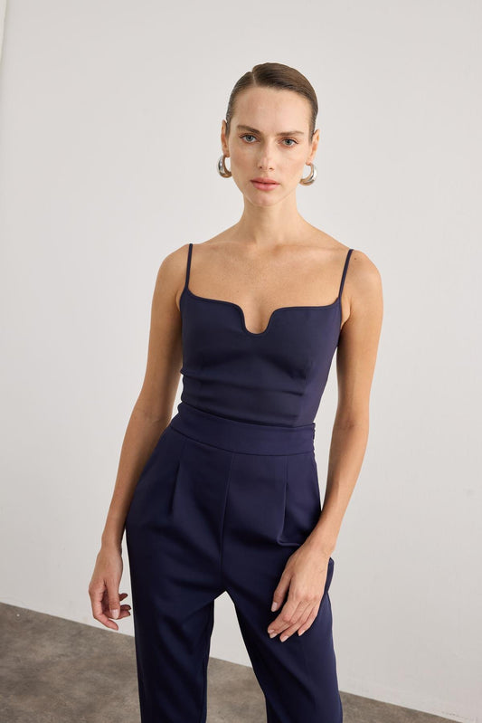 Yüksek Belli Önü Pileli Lacivert Pantolon