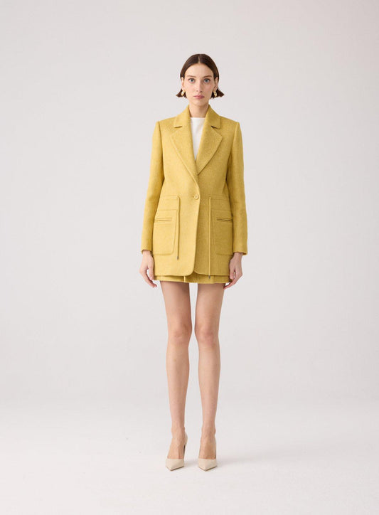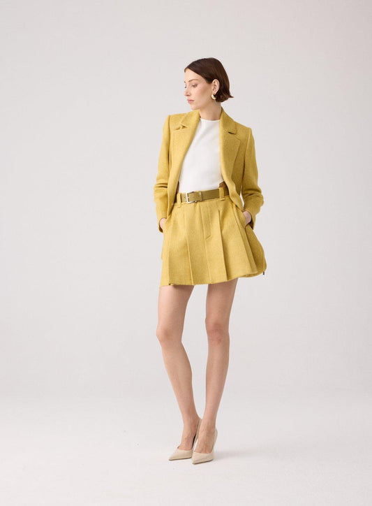 İndirimYün Dokulu Pileli Haki Mini Etek