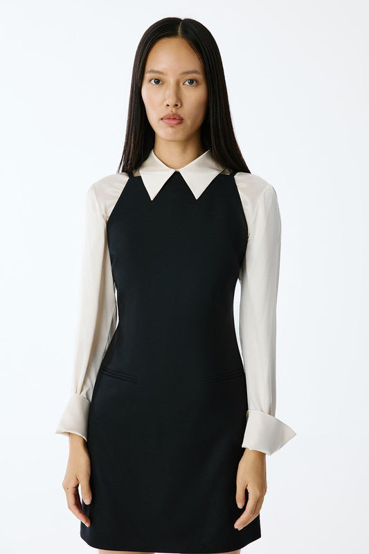 Yün Dokulu Kare Yaka Mini Siyah Elbise