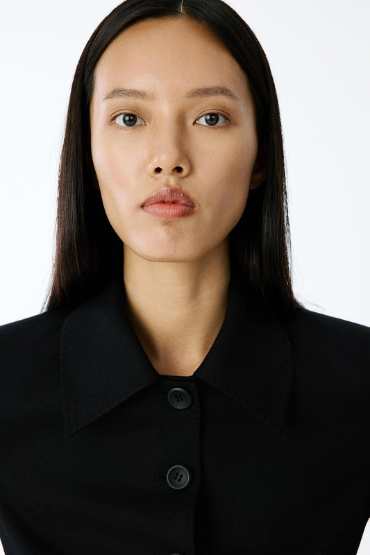 Yün Dokulu Fermuarlı Crop Siyah Ceket