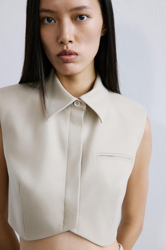 Yün Dokulu Vatkalı Bej Crop Yelek