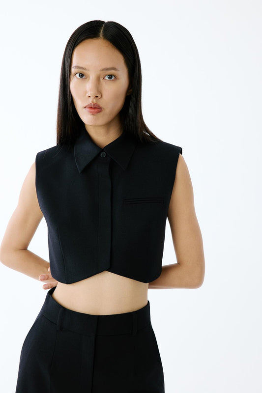 Yün Dokulu Vatkalı Siyah Crop Yelek