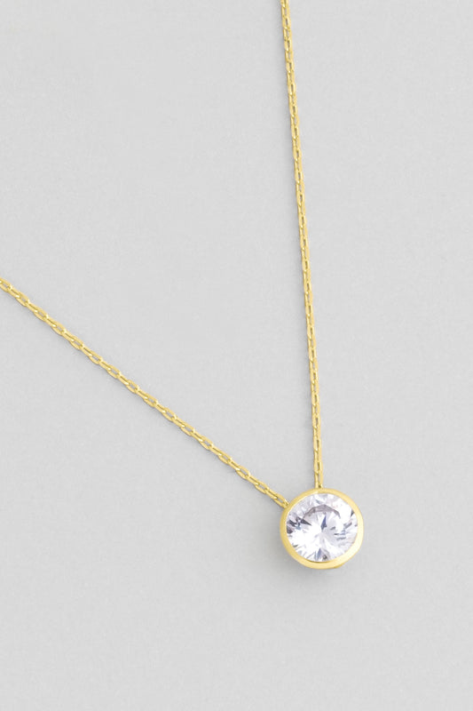 Yuvarlak Kesim 18 Ayar Sarı Altın Kaplama 45 Cm Gümüş Tek Taş Kolye 5134340144