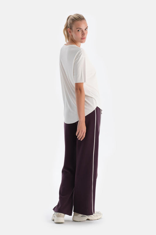 Mürdüm Kadın Modal Karışımlı Yan Şerit Detaylı Pantolon