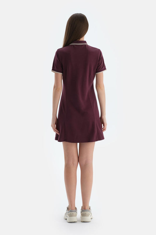 Mürdüm Kadın Modal Karışımlı Kısa Kollu Düğmeli Elbise