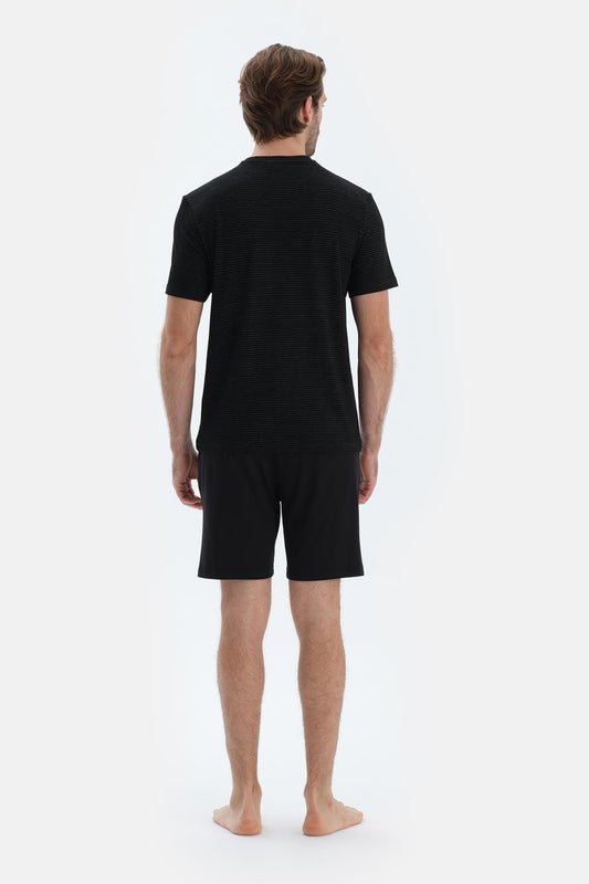 Siyah Kısa Kollu Çizgili Tişört Pantolon Pijama Takımı