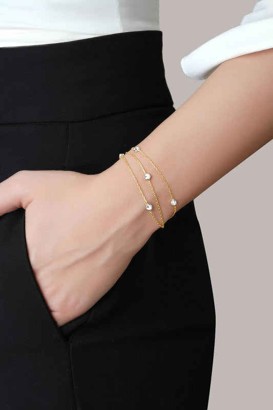 Zirkon Taşlı 18 Ayar Sarı Altın Kaplama 19 Cm Üç Sıra Gümüş Bileklik 1001630144
