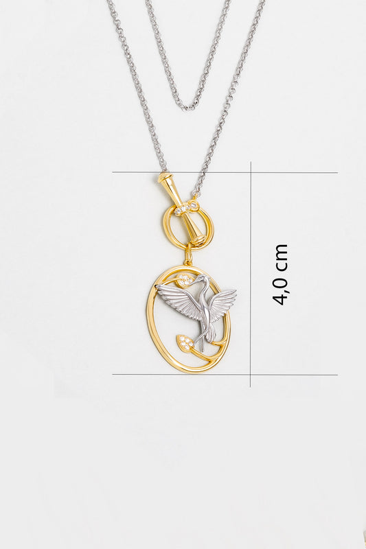 Turna Kuşu 18 Ayar Beyaz Ve Sarı Altın Kaplama 46 Cm Gümüş Kolye 1170904499