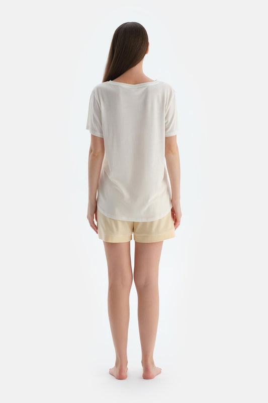 Turuncu Şal Desenli Penye Modal Gömlek Şort Pijama Takımı