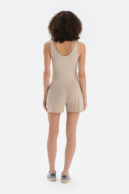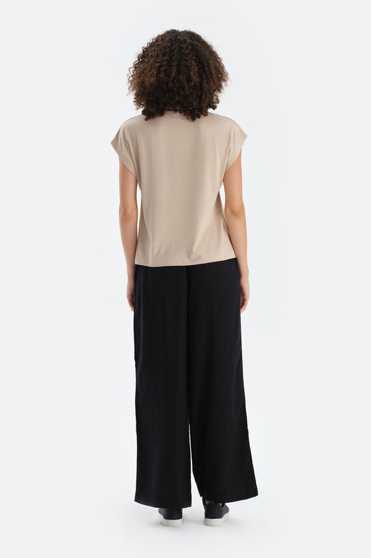 Taş V Yaka Pilikaşeli Viskon Tişört