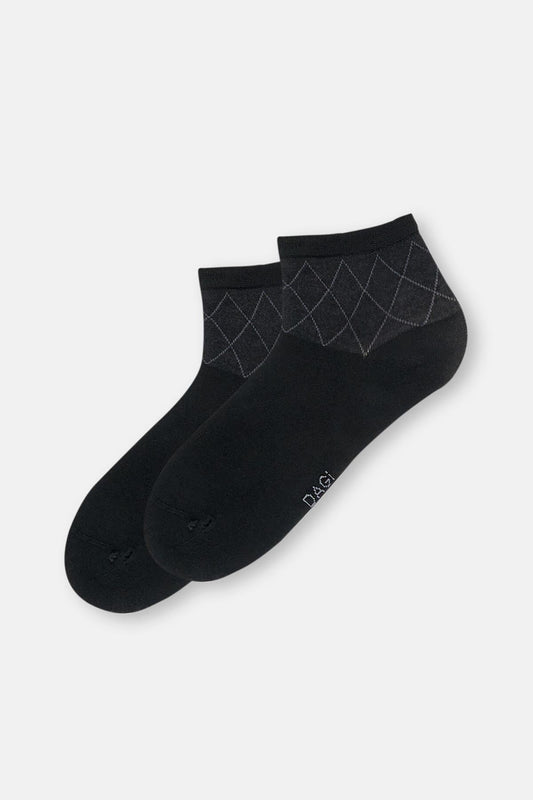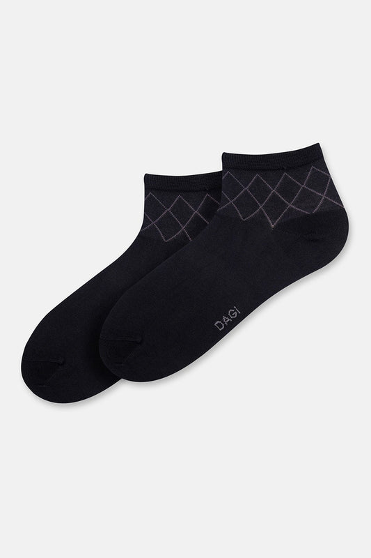 Siyah Erkek Baklava Desen Görünmez Çorap