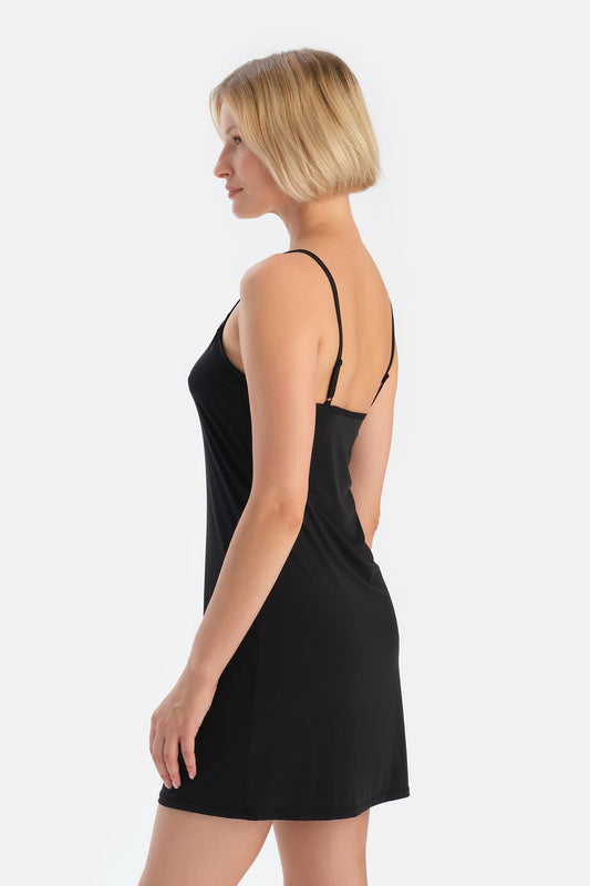 Siyah Ince Askılı Dantelli Jupon Elbise