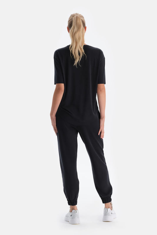 Siyah Kadın Modal Karışımlı Yan Şerit Detaylı Pantolon