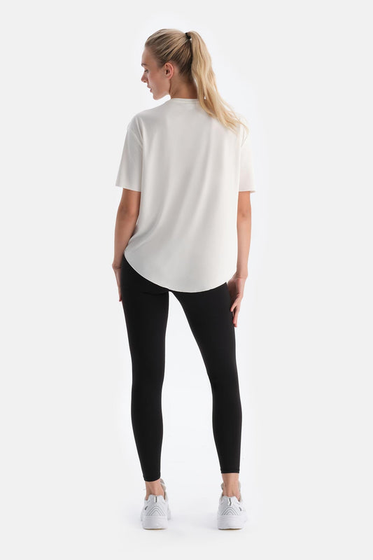 Siyah Kadın Modal Yırtmaç Detaylı Tişört