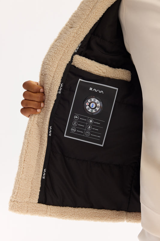 Bej Klasik Yaka Düz Peluş Kumaş Mont
