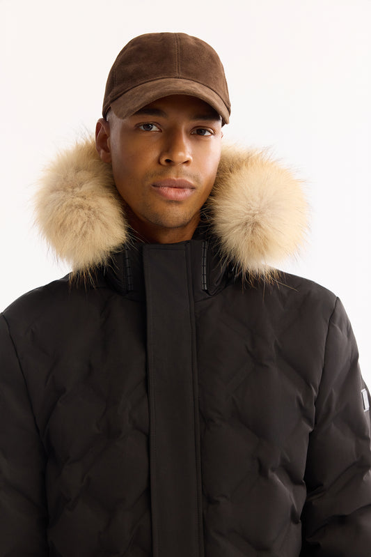 Siyah Kapüşonlu Yaka Kapitone Polyester Kumaş Mont
