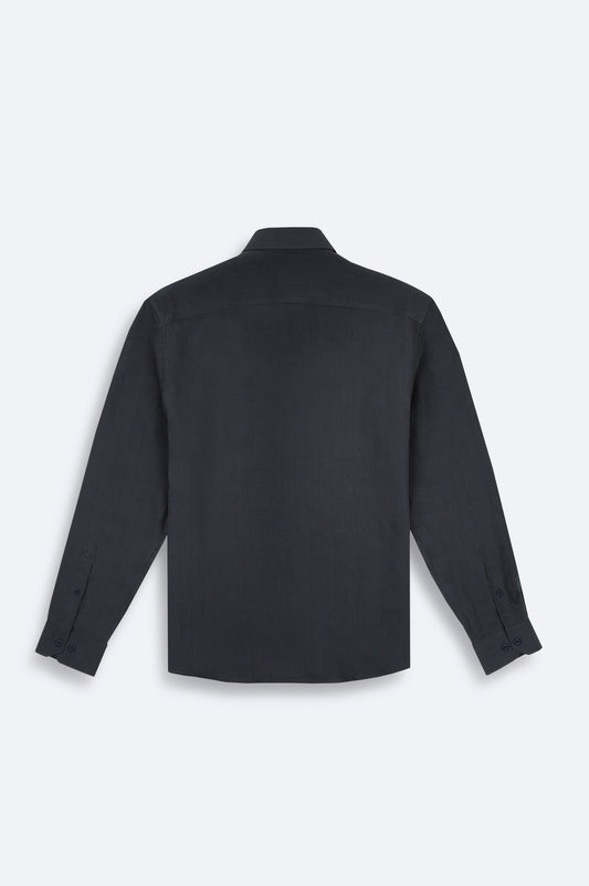 Siyah Düğmeli Yaka Düz Pamuk/ Viskon Kumaş Gömlek