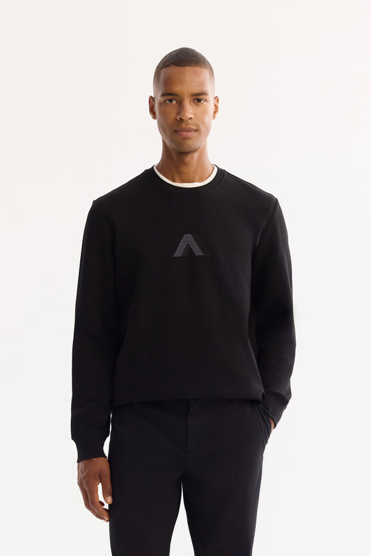 Siyah Bisiklet Yaka Düz Interlok Kumaş Sweatshirt