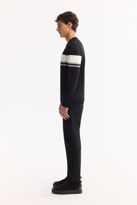 Siyah Bisiklet Yaka Blok Renkli Polyelit Iplik Kazak