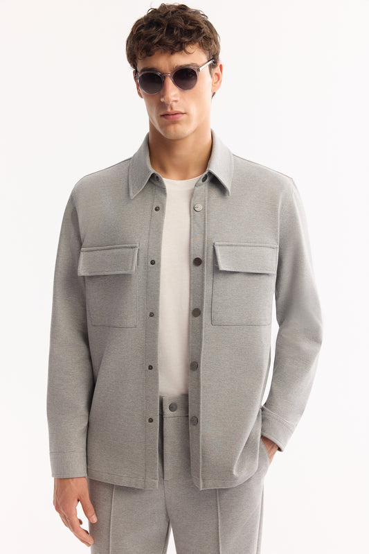 Gri Klasik Yaka Düz Pamuk/ Polyester Örme Kumaş Ceket Gömlek