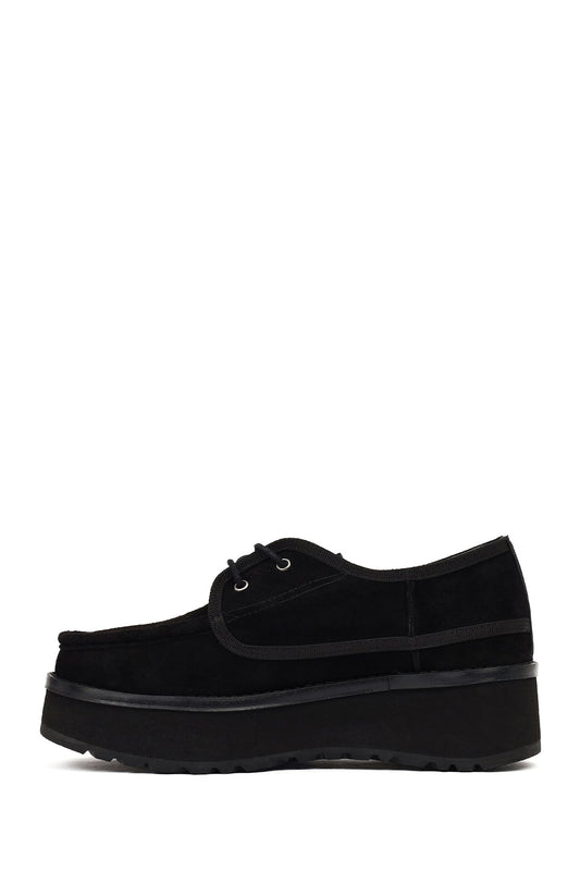 Kadın Siyah Kalın Tabanlı Bağcıklı Süet Deri Teddy Casual Ayakkabı