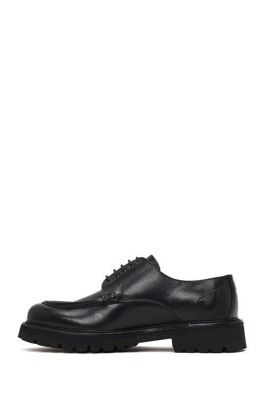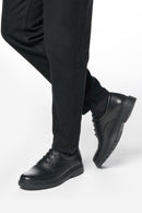Erkek Siyah Bağcıklı Kalın Tabanlı Deri Casual Ayakkabı