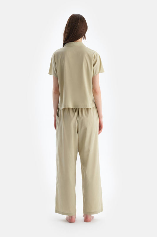 Açık Yeşil Polo Yaka Tişört Şort Pijama Takımı