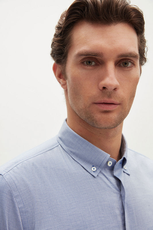 Damat Slim Fit Lacivert Armürlü %100 Pamuklu Gömlek