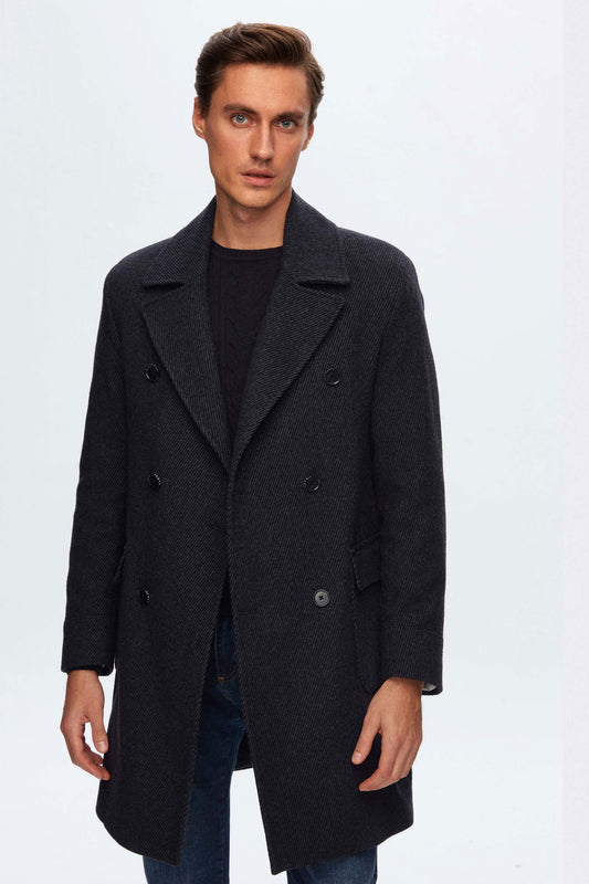 Damat Regular Fit Lacivert Yün Karışımlı Successori Reda Palto