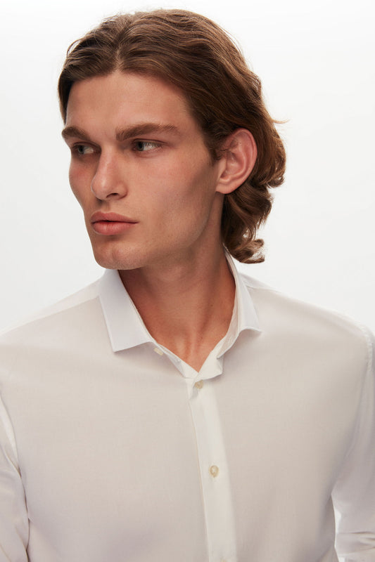 Tween Slim Fit Beyaz Düz Travel Gömlek