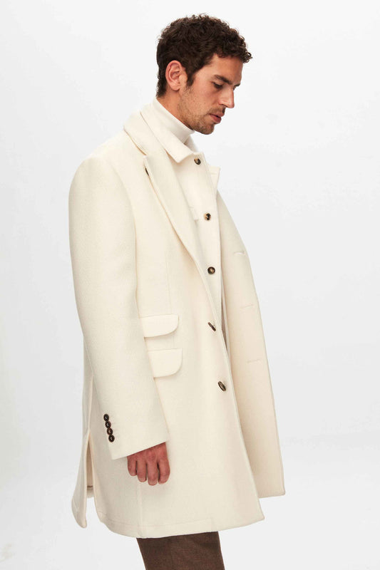 Damat Slim Fit Ekru Yünlü Palto