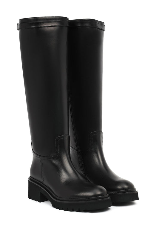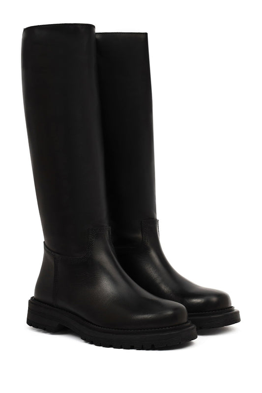 Kadın Siyah Kalın Tabanlı Deri Çizme