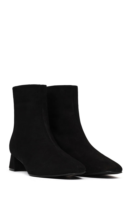 • Kadın Siyah Fermuarlı Kısa Kalın Topuklu Süet Deri Bot