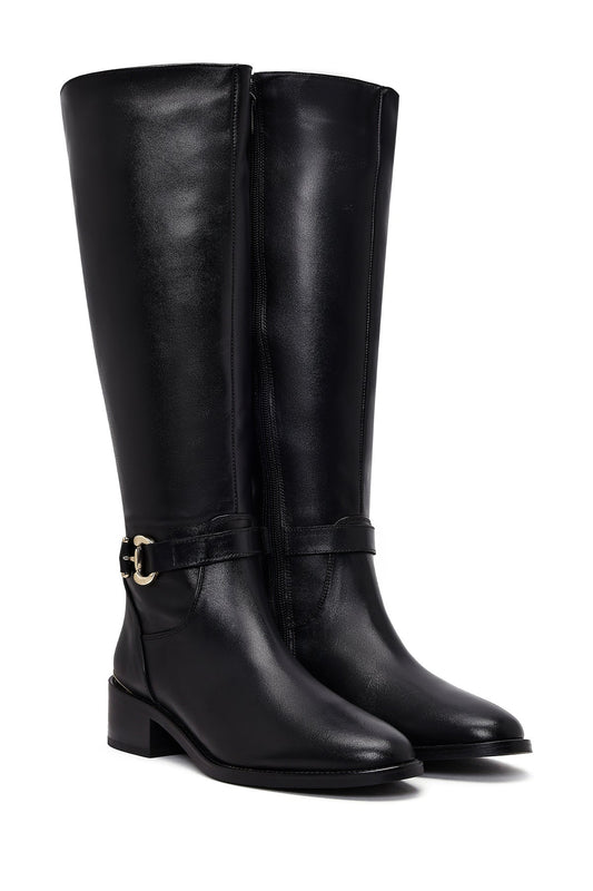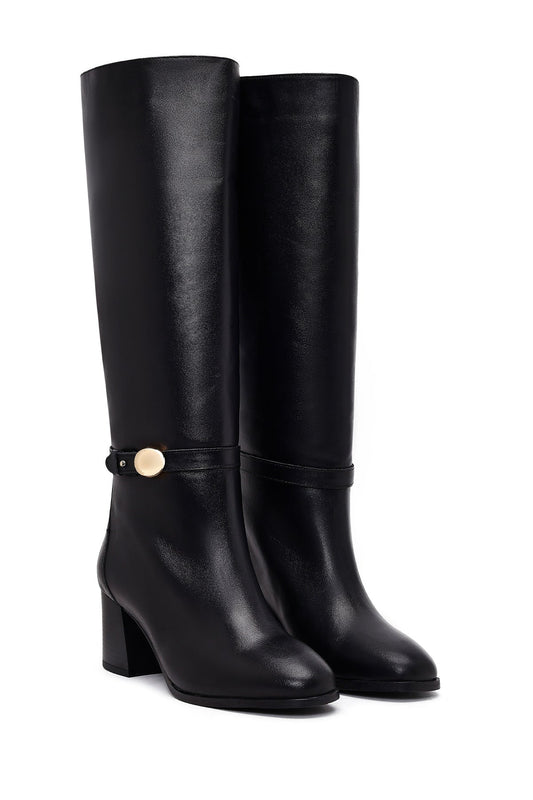 Kadın Siyah Kalın Topuklu Deri Çizme