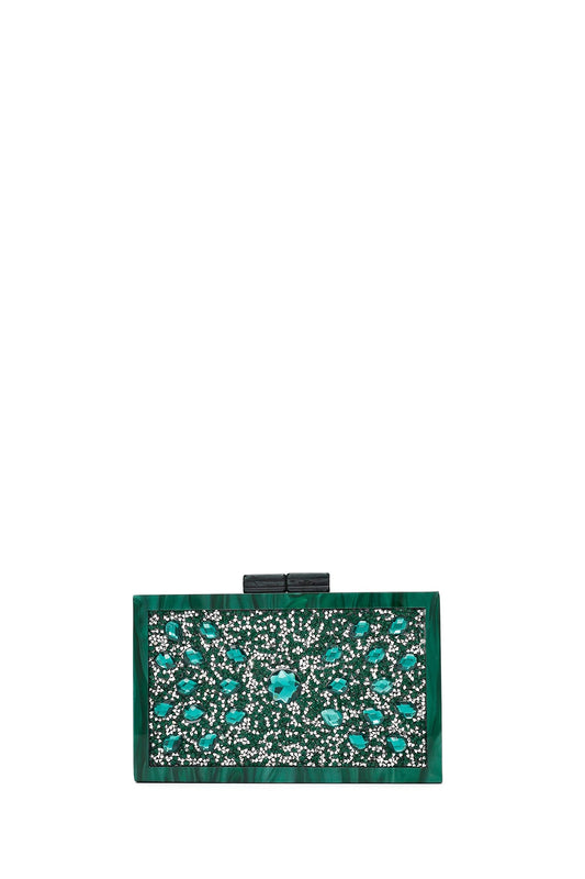 Kadın Yeşil Zincir Askılı Taşlı Mini Portföy Çanta