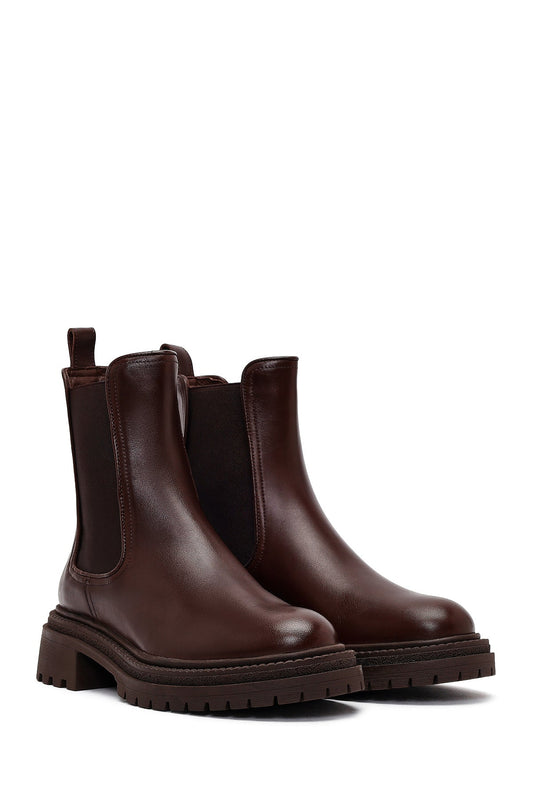 Kadın Kahverengi Kalın Tabanlı Deri Chelsea Bot