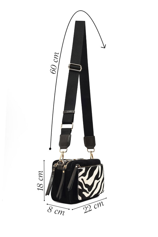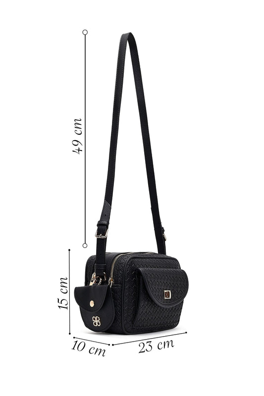 Kadın Siyah Uzun Askılı Desenli Çapraz Çanta