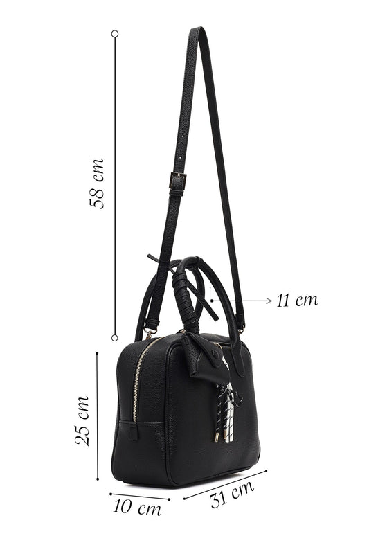 Kadın Siyah Uzun Askılı Charmlı Kol Çantası