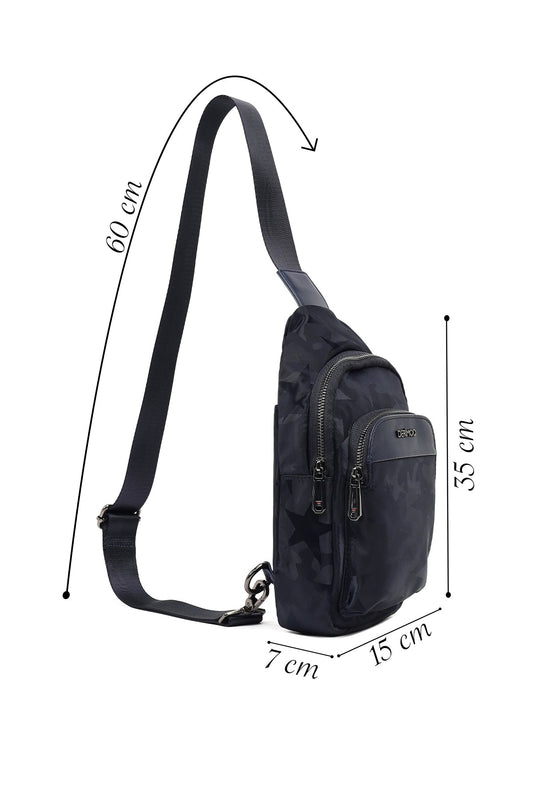 Erkek Lacivert Baskılı Kumaş Çapraz Çanta