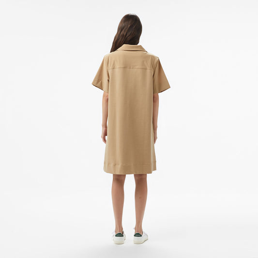 Lacoste Kadın Relaxed Fit Kısa Kollu Polo Yaka Bej Elbise